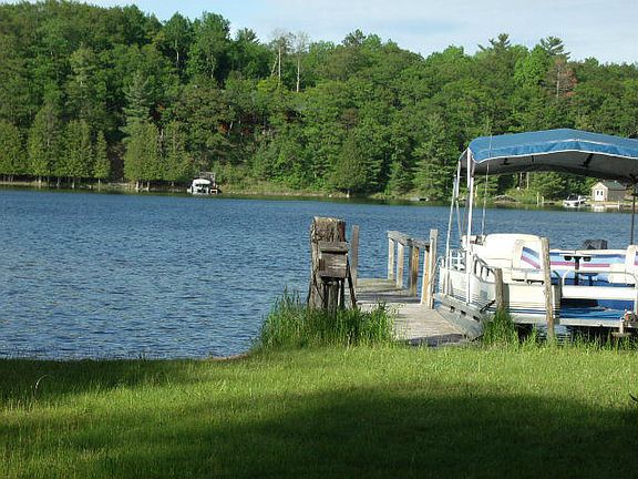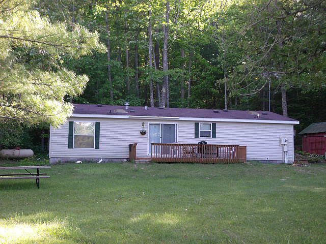 Private waterfront with easy maintenance ranch home. Wooded parcel is secluded with 282' on Hillman's Long Lake. Great fishing, swimming & boating on this All-Sport lake. The manufactured, 3 bedroom/2 bath home features large deck off of dining area. All appliances included plus 18' pontoon boat with trailer and floating dock.