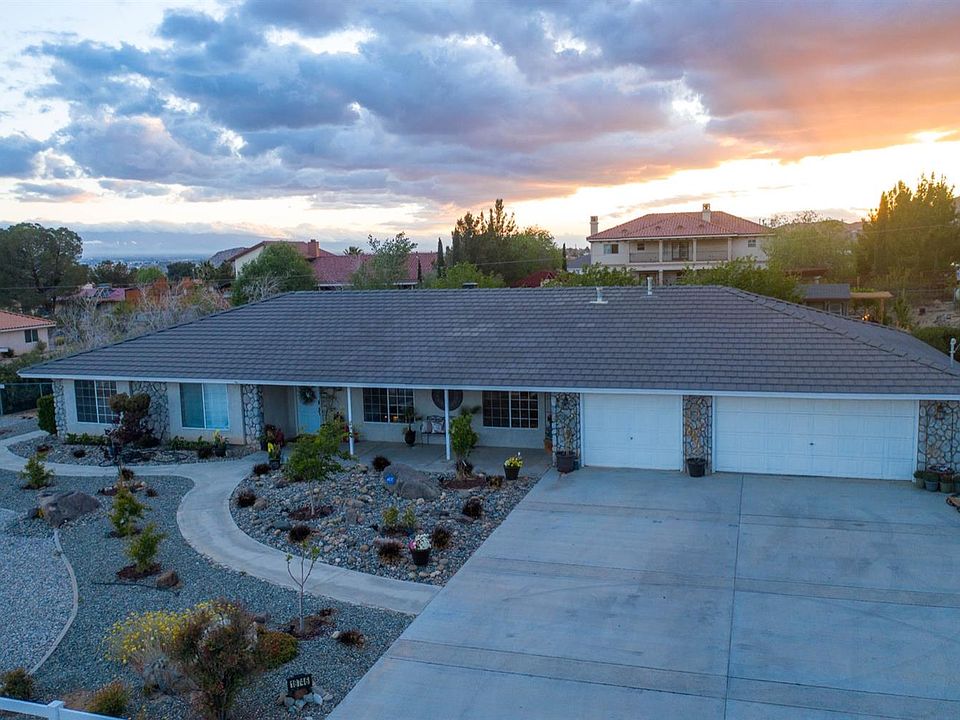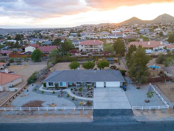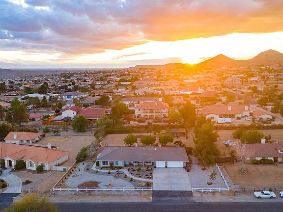 Magnificent upgraded Desert Knolls home in an upscale neighborhood of Apple Valley! Flooring has been upgraded with new wood laminate flooring, all brand new ceiling fans, and brand new shutters. A very large 789 square foot attached 3 car garage with workshop area. Extra wide drive way with RV access and parking on the side with double gate. Completely fenced. Decorative river rock column and a large porch on the front to enjoy the breath-taking views. Home features a sunken formal living room, separate formal dining room, separate family room with brick fireplace, country kitchen has corian counters, stainless steel sink with pull down faucet, all stainless steel kitchen appliances, and walk-in pantry. Large breakfast area next to the kitchen with bay windows. In house laundry area with deep sink and storage cabinets. All bedrooms are spacious with mirror door closets. Larger master bedrooms has bay window, his and her closets. Master bathroom has double sinks, and spectacularly remodeled modern shower. Water conserving rock landscaping front and back with larger boulders, curbings, concrete pathways, mature shed trees, and native shrubs. Large back covered patio has decorative stamped concrete. A storage shed also comes with the sale. Beautiful raised bed garden in back, and greenhouse with fruit trees and grapes for your own private vineyard. What an absolutely incredible home! Come schedule your private viewing today!