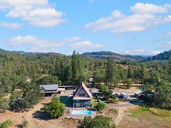 Come fly away today! Don't miss out on this beautiful secluded A-frame home on 40 acres with an in-ground pool, private grass landing strip, airplane hanger, fuel tank, and in-ground wing tie downs, all in a park-like setting. Plenty of room for fly-in's or large family/friend cook or campouts. This home features two bedrooms (possibly 3) and two baths, a large mud/laundry room, daylight basement and beautiful views from every window. The detached garage/shop has plenty of storage and hot water. There are two horse stalls, and three enclosed storage areas for hay, tack and yard tools.
