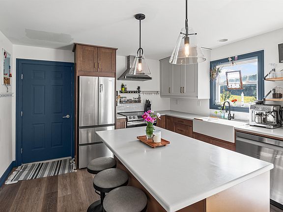 This striking 3-bedroom, 2.5-bath stone front home offers 1,952 sq ft of well-designed living space on 6.11 acres. With a modern interior, expansive layout, and bonus finished shop space, this property is ideal for anyone looking for both comfort and functionality. Inside, the main level features a den, formal dining room, spacious living room, an eat-in kitchen, laundry room, and a half bath. Upstairs, you’ll find all three bedrooms, including the primary suite with a private bath featuring twin vanity sinks, a walk-in closet, and a separate toilet and shower area. The home includes a 2-car attached garage, plus an oversized finished 2-car detached garage/shop. This versatile space is heated and cooled, and includes a full bath with a washer and dryer, a separate room, a loft area, and a built-in bar with sink and refrigerator. Enjoy low-maintenance landscaping with perennial flowers, a line of cheerful sunflowers near the shop, and a variety of fruit trees behind the shop and by the garden area. The tillable acreage is currently leased to a local farmer, providing optional rental income.
