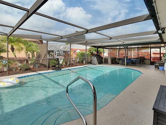 Welcome to 1875 Monticello Street in Deltona — a beautifully maintained brick home built by respected local builder Dan Moore, known for quality craftsmanship. This 3-bedroom, 2-bath pool residence offers 2,025 sq ft of heated living space, including an oversized enclosed 2-car garage with a new mini-split system. The garage can easily be converted back to its original use, if desired. The layout flows comfortably from the tiled entry into a spacious living room, a Florida room currently used as a dining area, and an updated kitchen. The kitchen features solid wood cabinets, soft-close drawers and doors, stunning granite countertops, a center island with seating, and stainless steel appliances. Additional upgrades include energy-efficient double-pane windows, AC new in 2021 , and a durable metal roof installed in 2015. Features also include an interior laundry room with storage and a a 12x10 workout room. Step outside to your own backyard retreat—featuring a large 23x40 screened-in pool and a 23x13 covered lanai, ideal for entertaining or just relaxing. Two detached buildings add flexibility: a 16x20 garage/workshop that can accommodate a vehicle, and a separate 10x12 workshop. With two driveways, no HOA, and beautifully landscaped grounds, there’s plenty of space for vehicles, tools, or toys. Conveniently located near parks, schools, shopping and I-4 access. This home has it all—schedule your showing today!