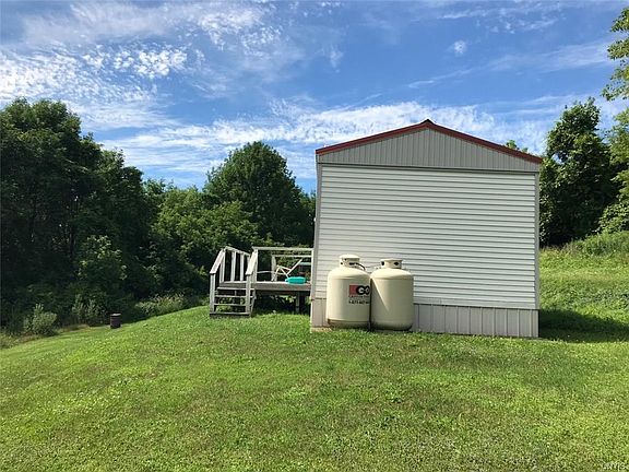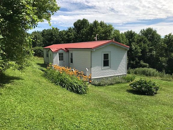 Affordable ranch tucked on wooded lot. The lot slopes and views of Otisco Lake are possible. Open floor plan with 3 bedrooms and 2 baths. Upgrades include enclosed entry, steel roof, vinyl siding, replacement windows and high efficiency propane furnace. Detached one car garage, and a garden shed big enough to store tools and a lawn mower. Additional 31 acres available.