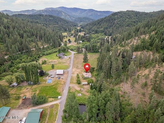 Discover the perfect blend of opportunity and tranquility on this private, flat 6-acre parcel near Wolf Lodge. As the highest property in the valley, it offers peace of mind with no flood risk and expansive views of open fields, fruit-bearing apple trees, lilacs, fir trees, and a freshwater pond stocked with fish. Wildlife is abundant, deer frequently roam the pasture, enhancing the serene, rural atmosphere.