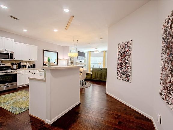 Discover Brighton Village, East Atlanta's premier gated community, and step into this stunning end-unit townhome featuring one of the largest floorplans available along with a spacious two-car garage. Every detail has been thoughtfully modernized for comfort and style. The main level welcomes you with elegant wood flooring and a dramatic two-story foyer enhanced by a striking wallpaper accent wall. The powder room showcases board and batten details and luxury vinyl plank flooring. The expansive, open-concept kitchen boasts stainless steel appliances and sleek polished white cabinetry, perfect for entertaining. Conveniently located just off the kitchen and providing direct access to the garage, the separate custom laundry room features double cabinets for generous storage, a Quartz countertop folding station, a handy hanging bar for clothes, and the added benefit of a pantry, making it a versatile space for both daily chores and kitchen overflow. The dining and living areas are bright and open, featuring custom built-in bookcases with shelving and cabinets to discreetly store A/V equipment, complemented by a beautiful stone fireplace as the centerpiece. Retreat to the oversized primary bedroom with a fully remodeled ensuite bathroom. Enjoy double vanity marble countertops, fresh white cabinetry, a tiled glass shower with a rainfall showerhead, and custom shelving with laundry storage below. The primary suite also offers a spectacular walk-in closet, complete with shoe shelves, built-in drawers and cabinets, and abundant space for both hanging and folded clothes. Upstairs, you'll find four versatile rooms: two dedicated bedrooms, an office easily converted to a bedroom, and a spacious bonus room ideal for a den, media room, or additional bedroom. A shared bathroom and a linen closet provide added convenience for the upper level. Step outside and enjoy the community’s exceptional amenities, including a sparkling pool and a playground—perfect for relaxing, recreation, and connecting with neighbors. Enjoy easy access to the interstate, just 10 minutes from Downtown Atlanta, and close proximity to shopping and public transit. This exceptional townhome combines luxury living with unbeatable location and wonderful neighborhood perks.