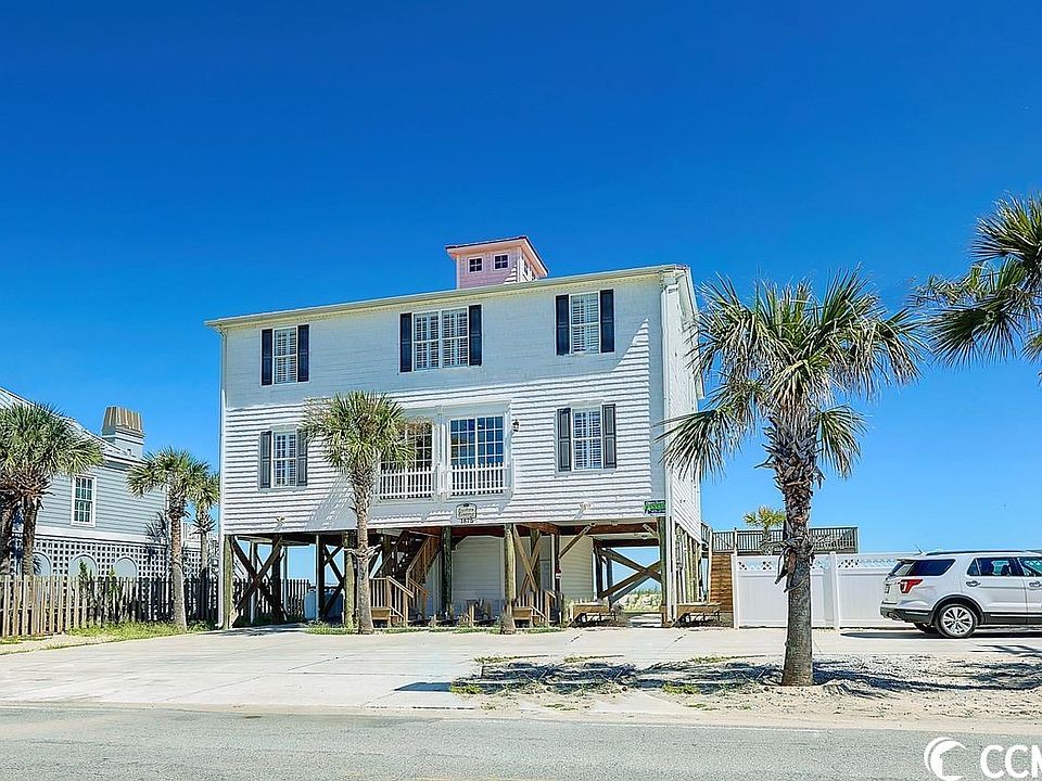 Located on the southern end of the Garden City peninsula is a seven-bedroom seven-and-a-half bath house called Southern Elegance. It features ample parking, incredible closet and storage space, ocean-facing porches, and an elevated outdoor picnic area to enjoy pool and ocean views. The first living floor has ample family space, including multiple eating areas, a large kitchen, a wet bar, a half bath, and two bedrooms with bathrooms. This home also offers an elevator that services all floors, and a washer and dryer on each floor. Upstairs are five additional bedrooms and bathrooms, a large den complete with a convenient wet bar, and an oceanfront porch. Enjoy a dip in the private pool, or head straight to the beach! Additionally, the rental history is fantastic. Don't miss the walking video tour!