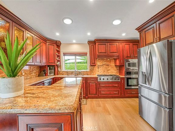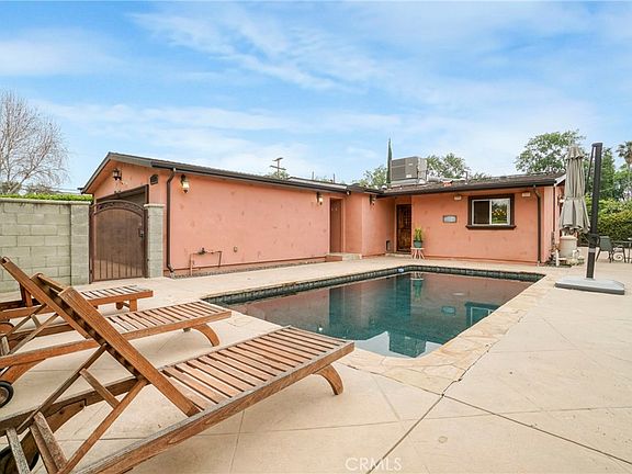 Welcome to 15780 Keswick Street — a beautifully upgraded 3-bedroom, 2.5-bathroom retreat offering over 2,000 sq. ft. of elegant living space. Perfectly situated on a private corner lot in a desirable double cul-de-sac, this home provides the ideal blend of serenity and accessibility, just minutes from Northridge’s shopping, dining, and top-rated schools. Step into your private sanctuary, where a dark-bottom sparkling pool, vine-covered walls, and a low-maintenance yard featuring stamped concrete and lush artificial turf create a resort-like setting perfect for relaxation and entertaining. Inside, you’ll be greeted by soaring vaulted ceilings, abundant natural light, and a seamless open-concept layout that radiates warmth and sophistication. The chef’s kitchen is an entertainer’s dream — complete with a Viking range, pot filler, granite countertops, custom cabinetry, and a stylish breakfast bar that connects effortlessly to the spacious dining and living areas. Enjoy cozy evenings by the double-sided fireplace or gather in the inviting family room with French doors that open to a covered patio — ideal for year-round enjoyment. The primary suite serves as a luxurious escape with its spa-inspired en-suite bath and walk-in closet, while the two additional bedrooms offer comfort, wood flooring, and custom tilework throughout. A dedicated laundry room with direct garage access adds everyday convenience. This home truly has it all — location, design, and value — and with a new price improvement, it’s now an even more incredible opportunity for discerning buyers. Don’t miss your chance to make this Northridge-adjacent gem your own.