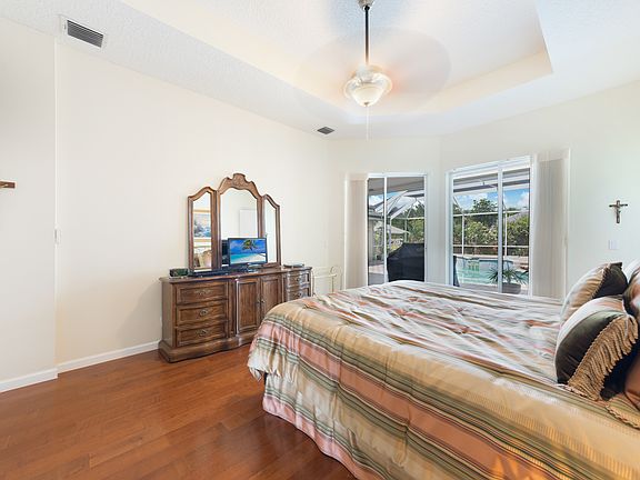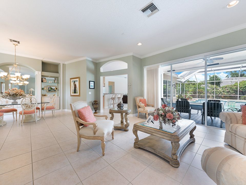 Beautiful Home located in highly sought after gated community of River Ridge. CBS construction, Private pool, Low Hoa Fees. Tile throughout the house and wood floors in bedrooms. 4 bed, 3 bath AND den. Open floor plan, new A/C, new hot water heater, crown moldings, arched doorways, hardwood floors in all bedrooms and den roof in 2010 Central vac. 3 car garage,pavers Large screened patio and covered lanai make this the perfect florida home