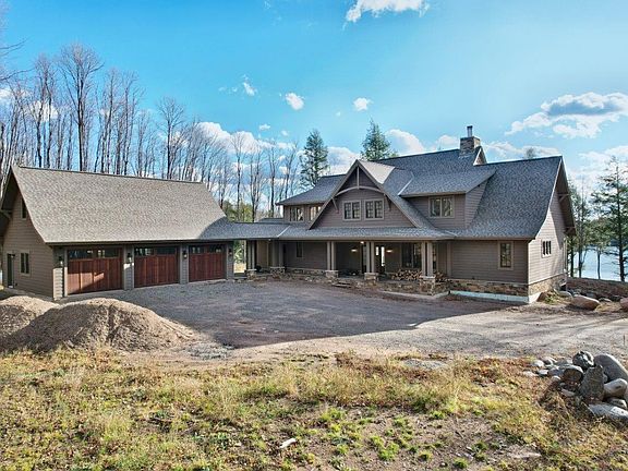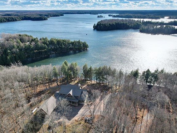 Exceptional waterfront estate on Big Lake of the famous Cisco Chain of Lakes. Sitting on 5.65 acres with 626 feet of sand-bottom frontage on Michigan Bay, this newly built home offers 3,905 sq ft of living area. The great room is truly grand with 28’ ceilings, a full-height stone fireplace, dry bar, and a lakeside wall of custom windows. Wake up to Northwoods serenity in the spacious primary suite with bath and a large walk-in closet. A gourmet kitchen with pantry, mudroom, office, laundry, and a huge screened porch with its own gas fireplace finish off the main level. Two guest suites with private baths and a cozy loft reading area complete the upper level. An oversized 3-car garage connected by covered walkway offers plenty of storage along with the home's full basement. The property also includes a newly renovated log guest cottage with 2 bedrooms, 2 bathrooms, loft sleeping area, full basement with laundry, screened porch, deck, and its own dock. Property also adjoins USFS lands.