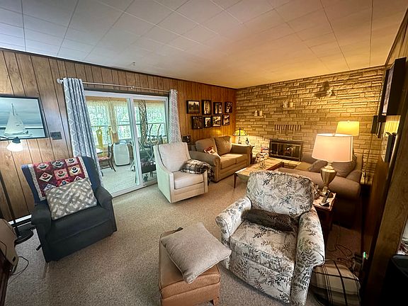 Charming 3-bedroom ranch, nestled in the woods, on approximately 2 acres. The home features a 2-car garage and is part of the Ess Lake Association. The entryway has a woodstove, offering an excellent backup heat source. The electric fireplace in the main living area adds both warmth and ambiance. Enjoy the changing seasons from the comfort of the 3-season enclosed porch overlooking the backyard. This home is equipped with an on-demand generator for peace of mind. Association dues are just $50 per year and include access to three deeded lakefront areas on beautiful Ess Lake, a tennis court, pavilion at Long Lake, boat launch, dock, and designated swimming areas. With state land nearby, outdoor recreation is always within reach. Buyers/their experts should verify measurements & boundaries.