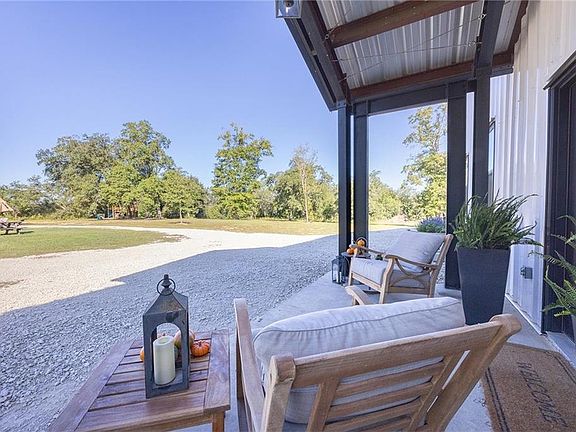 MODERN BARNDOMINIUM ON 20 PRIVATE ACRES --NOW PRICED BELOW APPRAISED VALUE -SELLER'S ARE MOTIVATED TO SELL! Just minutes from the beloved Fish River Christmas Tree Farms, this versatile property offers the best of both worlds—peaceful seclusion with easy access to Fairhope, Foley, and the Gulf Coast. The newly built 3-bedroom, 2-bath barndominium home blends modern farmhouse warmth with industrial style. Inside, you’ll find: Custom cabinetry with quartz countertops and a farmhouse fireclay sink,Stainless steel appliances Easy-to-maintain sealed concrete floors,A cozy fireplace accent wall with custom mantle storage, A spacious master suite with double sinks, quartz counters, and a large walk-in closet Modern fixtures throughout. Step directly into the insulated shop with oversized roll-up doors—perfect for RV parking, ATVs, or workshop space. With a flexible barndominium design, you can expand living space upward, add an office, or create additional storage to fit your needs. Outdoors, enjoy above-ground garden beds, a playground, firepit area, and extensive walking/ATV trails. A fenced section is ready for livestock, while kids and guests will love the real treehouse, dirt bike tracks, and zipline. Wildlife lovers will appreciate the huntable acreage, deer and bird sightings, and the peaceful front porch views. Hosting is easy too—with an RV hookup for visiting family and friends. This property truly has it all: room to grow, space to play, and the kind of privacy that’s hard to find—yet only 20 minutes from town and 40 minutes to the Gulf beaches. Whether you’re seeking a full-time residence, a weekend retreat, or a seasonal snowbird escape, this home is ready to welcome you.? Priced below recent appraised value —Shop area with double roll up doors is 40X25! schedule your showing today! Buyer to verify all information during due diligence.