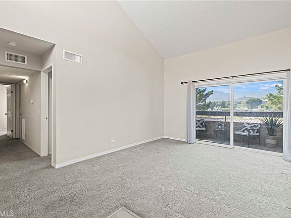 Welcome to this beautifully kept 3 bedroom, 2 bathroom condo in the River Canyon Community. As you walk inside you will immediately notice how light and bright the living area is with high ceilings and natural light. The open floor plan is perfect for enjoying friends and family. The 3 bedrooms are down the hall ending with the oversized primary bedroom with a walk in closet and private bathroom. All 3 bedroom windows face the river bed giving privacy with no units behind. The newer windows, upper level unit and the location in the back of the complex make for very quiet living. The 2 covered parking spots are conveniently located below the unit and the paseo access is steps away where you can walk, run or bike for miles across The Santa Clarita Valley. The HOA includes access to the pool/spa and covers water, trash and earthquake insurance! Welcome home!!!