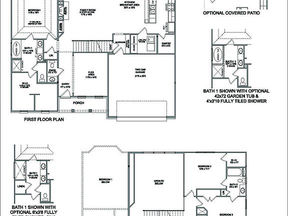 The Bridgeport offers a luxurious first floor primary bedroom suite, open living areas, and three bedrooms and two baths plus loft on the second floor. Main floor living areas include a flex room open to the entry, and a large two story family room opening to the kitchen and breakfast area. The kitchen features an island design, a large walk-in pantry, and easy access to the mudroom with optional drop zone, as well as the separate utility room with built in folding counter. The primary bedroom suite has a trey ceiling with 11' ceiling height, a beautiful bay window with palladian window that can form a sitting nook, and a luxury bath with garden tub, separate shower, 7' double bowl vanity, and two defined closet spaces. Upstairs, three bedrooms and two full bath share access to a loft. Exterior details include a covered front porch, hip roof, and distinctive elongated windows on the first floor.