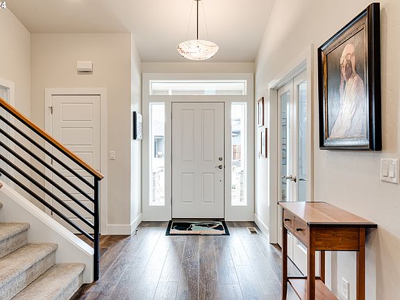 This quality built Heitman Custom Home is located in North Gilham in the highly sought after "The Nines" neighborhood. Sighted on the last street in the subdivision this property backs up to unimproved common area which provides expansive views, privacy and nature trails that lead to Mirror Pond. The large private covered back patio includes a gas fireplace to enjoy any time of year. The interior includes a office on the main level with french doors; great room with 15 ft soaring ceilings, skylights and gas fireplace. The primary bedroom is located on the main level and features a luxurious bathroom with heated tile floors, tile shower with a standard shower head and a rain shower head, quartz counters and a soaking tub. The large chef's kitchen has Cherry cabinets, quartz countertops with tile backsplash, soft close cabinets throughout, two large pantryies,stainless steel appliances with a 5 burner gas range and large island perfect for entertaining. There is a large utility room with sink and an abundance of cabinets. Upstairs you will find a bonus room currently being used as a game room, 3 large bedrooms, storage area, full bathroom and a second set of washer & dryer. The large, oversized three car garage has an abundance of storage space with the 3rd bay being extra deep.