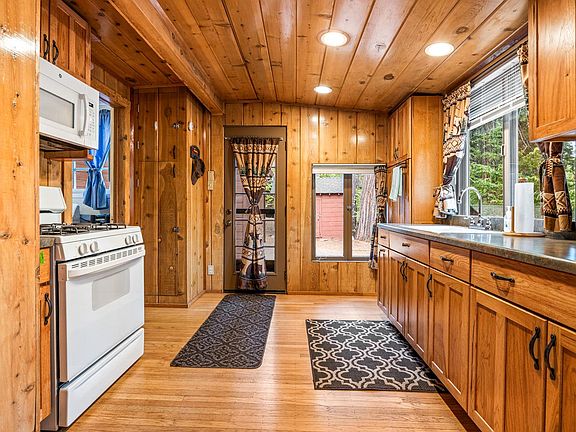 Tucked back off the road, this charming single-level cabin offers privacy and convenience just minutes from downtown Arnold. Recent updates include the roof, kitchen(with hickory cabinets), bathroom, water heater, and electrical panel. Situated on a gently sloped and fully usable half-acre lot with water and sewer, the property provides endless possibilities. Multiple storage buildings offer plenty of space for tools, equipment, or a workshop. The circle driveway allows for easy access and ample parking. Relax in the hot tub and enjoy the fresh mountain air, or take advantage of the nearby Arnold Rim Trail for hiking and biking, and White Pines Lake for swimming and recreation. This cozy cabin combines mountain charm with modern updates ready for full-time living, a weekend retreat, or investment potential.