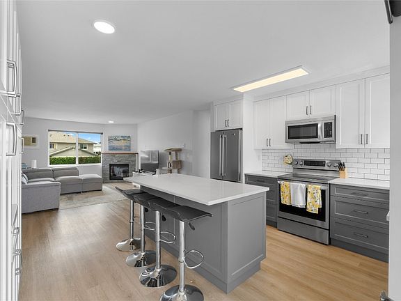 Don’t miss this beautifully updated 2-bedroom, 2-bathroom townhouse in Kirman Mews, an end unit offering extra privacy in a prime Brocklehurst location! This townhouse has been recently upgraded throughout, with a gorgeous new kitchen featuring quartz countertops, a massive island, new cabinets, plus an extra set of cabinets added on the opposite wall, classy backsplash and newer stainless steel appliances. The kitchen blends nicely with the large bright living room with a cozy natural gas fireplace, as well as access from the kitchen onto the east facing deck. Both of the bathrooms (one 4pc and one 2pc) have been fully upgraded as well as show like new! Most of the flooring has been upgraded to a durable and modern vinyl plank, carpet remains in the bedrooms for comfort on your feet. Additional features include in-unit laundry, two designated parking stalls, and a fantastic location - right next to the Brock Shopping Centre, with groceries, shops, and amenities just steps away. Low strata fee of 227.85. Move-in ready and packed with style and function, come see it for yourself today! Quick possession possible.