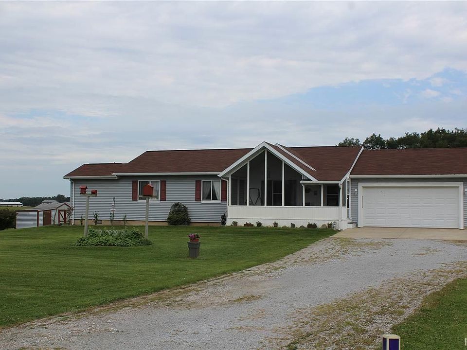 Four bedroom home on beautiful country acre with 3 apple, 2 pear and 1 cherry tree. Enjoy the country setting from your screened in front porch. Home has attached garage with a work shop area. Partial finished basement except for carpet. Basement includes 1 bedroom with a large oversized closet, storage room and a rec / family room. Master bedroom with master bath featuring a garden/ jetted tub and shower. Home has 2.5 bathrooms. Kitchen has 2 pantries. Dining room includes a large cabinet that is not attached and can be removed. Home to include dishwasher, stove, refrigerator, microwave and window treatments.