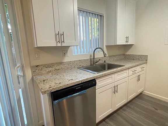 Renovated spacious two bedroom/two bath apartment home. New kitchen cabinets, quartz countertops, stainless steel appliances, new bathroom vanities with quartz countertops, custom paint, LVT flooring throughout the apartment. Comes with one car garage. Beautiful complex located close to shopping, dining and the beach. Property has a BBQ area. Close to 5 points in Huntington Beach.