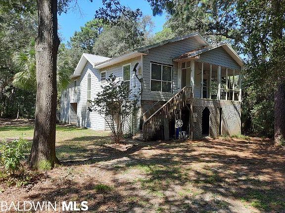 Beautiful 3 bedroom, 2 bath home rests on a gorgeous 1+/- acre, spring fed creek front lot and is surrounded by beautiful decades old azaleas and camellias along with majestic live oaks that offer a canopy of shade and visual interest. Keller creek flows into the Bon Secour River. This property has lot's of potential and the right buyer will quickly see a rare opportunity. Home is in need of repairs and would be perfect for someone with remodeling experience or possibly an investor. Home has multiple enclosed areas underneath that are currently a workshop and storage that may possibly be converted to living area or a separate apartment as it is already plumbed! Metal roof, screened porch and open deck offer lots of room for relaxing and/or entertaining. This is a must see so don't miss out! Seller is a licensed real estate agent in the state of Alabama.