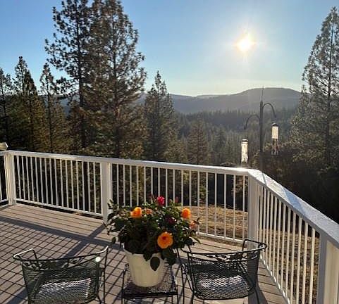 CUSTOM, PRIVATE, STUNNING VIEWS, PEACEFULL property offers breathtaking views and ultimate privacy on 20 acres of pristine land. The home features a vaulted living room filled with natural light, a fabulous open-concept kitchen perfect for entertaining, and a screened-in porch for year-round enjoyment. Enjoy the 2 bedrooms, Office Space and 3 bathrooms on one level. The spacious master suite includes a glass enclosed spacious multi-head shower, double sinks, private water closet, large walk-in closet, glass slider to hot-tub outside with amazing views. There's an additional 700 square feet of unfinished space downstairs not included in advertised SF. A two-car attached garage is complemented by a separate 2,000 square foot shop, providing ample space for hobbies and storage, Additional amenities include an 18x20 RV pad with full hook-ups, paved circular driveway and a 11kW generator & solar, security alarm system for peace of mind. There is room to grow, relax, or create, this one-of-a-kind property combines comfort, function, and stunning natural beauty. Enjoy the company of neighbor folks from the You Bet Community who meet each Friday for a Pot Luck by the mail boxes.