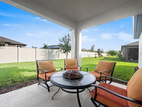 Wonderful New Construction 2018 Built Single Story home nestled onto a lush oversized lot in the heart of the amazing community of Talavera which is loaded with amenities such as huge resort style pool and clubhouse, basketball and tennis courts, playground and also zoned for the highly rated Land O'Lakes High School! Perfect curb appeal with a healthy lawn and gardens leading up to the covered front porch. Brilliant layout features a front room currently used as a home theater room but could also be an easy 4th bedroom conversion, home office or an epic huge formal dining room. The stunning kitchen is at the center and features stainless steel appliances, granite countertops, center island breakfast bar, rich espresso cabinetry and closet pantry. The open concept design provides for awesome lighting and comfortable living. Spacious living room is illuminated by sliding glass doors which open to an extra large covered lanai. Enjoy great outdoor living with a large backyard and also generous side-yards. The owners suite is a tranquil oasis including a full ensuite with a modern walk-in shower and a huge walk-in closet. The bedrooms are large with large closets. High 9 foot ceilings. Foyer coat closet. Elegant porcelain floors. Gutters, sprinklers and water softner. Excellent schools including highly rated Land O'Lakes High and well as close proximity to high performing charter and magnet schools such as Classic Prep, Countryside Montessori, Sanders STEAM and more. Super low HOA of only $18 per month ($55 per quarter).