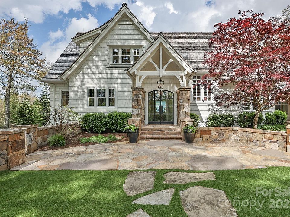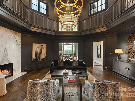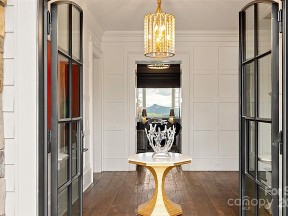 A Manor residence that truly stands alone: Foxhill offers captivating mountain views and timeless elegance. Recently reimagined, this home blends luxury finishes with exceptional comfort and livability. Just minutes from downtown Highlands, the property offers breathtaking panoramas of Whiteside Mountain and beyond from nearly every room. At the heart of the main level is an impressive library, featuring two stories of floor-to-ceiling custom bookcases. The chef’s kitchen showcases Kingdom Woodworks cabinetry, a full marble island, and an adjoining wet bar. It opens seamlessly to both the family room and dining area—each anchored by its own stone fireplace. A second, expansive great room flows from the library and frames sweeping mountain vistas. Think ballroom-sized living, complete with a grand fireplace and the flexibility to host gatherings both casual and formal. Three additional interior fireplaces create warmth and ambiance throughout. Foxhill offers two primary suite options. The main-level suite includes an en-suite bath and a covered porch with stellar views. The upper-level primary suite features an en-suite bath, morning bar, laundry room, and what many consider the finest view in the home. A private upper-level guest suite invites effortless hospitality. The full daylight lower level enhances the home’s capacity for entertaining, with a catering kitchen that serves the oversized outdoor patio and wood-burning fireplace. Also on this level are a state-of-the-art media room, an office overlooking the mountains, a wine cellar, and a large laundry room. Outdoor living is a defining hallmark of Foxhill. The crown jewel is the arched, covered stone outdoor family room—complete with a full outdoor kitchen and wood-burning fireplace—located just off the main floor. An intimate courtyard, accented by a 17th-century fountain imported from Paris, provides a charming setting for smaller gatherings. Quality craftsmanship is evident throughout, from Rocky Mountain Hardware to Waterworks fixtures. A detached guest cottage above the carport offers a private retreat for guests or quiet personal time. Foxhill is a rare blend of architectural grace, luxury amenities, and serene mountain living—an exceptional residence in every sense.