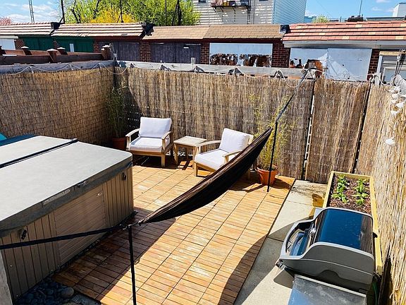 (VIDEO TOUR) The Willoughby house!!! This is your chance to own an amazing restored townhouse on a very quiet street in Ridgewood Queens with private outdoor space. Original hardwood floors finished with Rubio Monocoat a plant-based oil that is super easy to maintain. The house features an open floorplan with a chef's kitchen, a fully finished basement, and a backyard with a hot tub. There are three bedrooms and one bath on the top floor and the fully finished basement has a large bathroom and laundry. There is split unit airconditioning /radiator heating throughout and a two-car detached garage. What we love about this house is the charming details, central location, and the community. Just a short walk to the Jefferson (L) train or a quick drive into Manhattan or Rockaway Beach. There is a playground right on the corner and all of the neighbor's kids play in the ally behind the house. There is an incredible tree in front of the house that flowers every spring. You can easily go solar and it's possible to ad a roof deck or convert the property from a single-family to a two-family if desired. Text me with any questions I'm the agent and owner of the property.