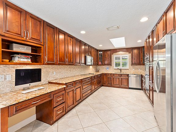 4Bed 3Bath 2Car Garage on 1/3 Acre corner lot. Heated Pool & Spa with Travertine paver patio & lushly landscaped fenced backyard! 1st floor master bedroom with large walk-in closet, recently updated bath featuring dual sinks with Quartz counters & large glass enclosed shower. Spacious eat in kitchen features 42'' Cherry Cabinets with glass accent doors, 3CM granite counters, stainless steel appliances, double oven. Special features include formal living & dining rooms, high vaulted ceilings, plantation shutters, wet bar, Brazilian cherry floors, 20'' Tile floors on diagonal, coral fireplace, Impact windows 2020 & Impact doors 2021, Hardie Plank siding in 2021, A/C's replaced in 2017 & 2018, large paver driveway 2015, flat tile roof in 2013, garage door 2010 & fence in 2005. Guard gated com