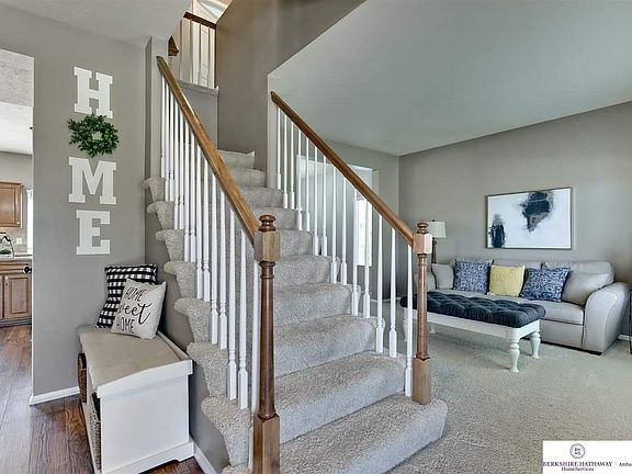 Beautiful Millard 2 Story! Immaculate 4 bed, 4 baths, perfectly situated next to neighborhood common area with walking trail and playground! Gorgeous, engineered hardwood floors will lead you from the entry to the wide-open light and bright kitchen with quartz counters and stainless steel appliances. Spacious family room with gas fireplace. Perfect for all your favorite gatherings! Primary bedroom features vaulted ceiling, HUGE walk-in closet, and 5 piece on suite with double sinks and whirlpool tub. Three other bedrooms all good size with large closets. Generous finished basement area with rec room, office/flex room and ¾ bath! Love the outdoors! You will enjoy the large backyard with new oversized patio, including basketball hoop, sprinkler system and fabulous 10 x 10 shed! No more crowding the garage with toys and lawn mower! New Water Heater and Hard Water Adjuster 2020, A/C, Roof, & new exterior paint in 2019, Furnace 2017. AMA Seller prefers closing July 2nd & possession July 5th