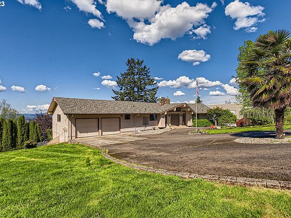 Seldom do we find a stunning location with main level living plus additional beds/baths in a great lower level with views. Floor plan was ahead of it's time providing exceptional views, walls of window and great volume and huge open kitchen. House has been structurally maintained well over the years, with new roof and good siding. Property is stunning, gentle rolling grounds. It lends itself to a gardener's paradise. There is abundant extra storage with additional detached garage and a storage unit. Huge turnaround driveway allows for great parking. No neighborhood restrictions as to use. One seller holds an active OR real estate license
