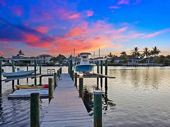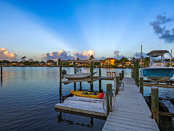 This coastal styled home is loaded with natural light and enjoys serene Loxahatchee River views with picturesque sunsets and beautiful reflections on the river at first light!The 16,000lb & 7000lb lifts will hold your boat or jet skis and are a scenic 15 minute ride to the Jupiter Inlet, a natural sandbar or a dozen quality restaurants. The spacious interior is highlighted by ground floor and upper level master suites. The well maintained home includes these recent updates: new stone coated metal roof('23), all 3 ac units and upper level water heater ('22) , washer, dryer and pool pump ('21), tankless water heater, pool heater and all kitchen appliances ('16&'17). Porcelain tile throughout main floor, cozy semi private bar room with wet bar, wine cooler and kegerator. The home is concrete block construction, view plans in the documents tab