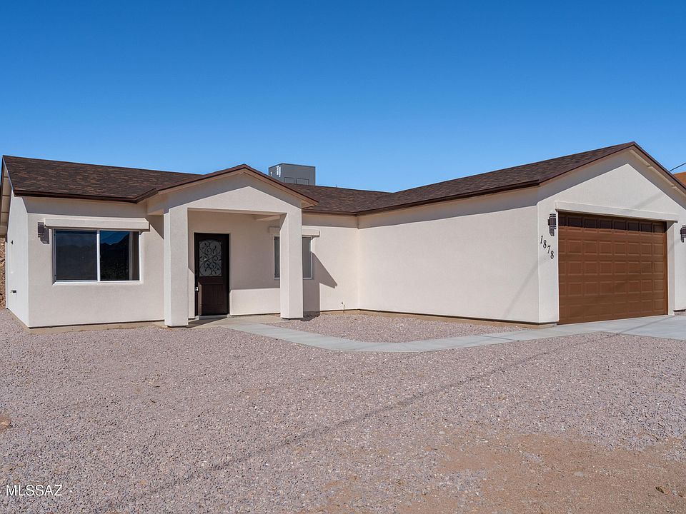 Welcome to your dream home! This stunning newly constructed 3-bedroom, 2-bathroom residence offers an inviting open layout with vaulted ceilings that create a sense of spaciousness. The modern kitchen is a chef's delight, featuring granite countertops and sleek cabinetry accented with elegant gold fixtures. Enjoy breathtaking mountain views from the comfort of your living room or the serene backyard.