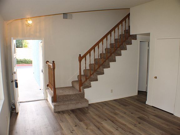Fresh Paint, New Carpet, New Flooring, New Stainless/black Range, Microwave and Dishwasher. Clean and ready for move-in! Lovely Indian Oaks end unit with one car garage and assigned parking space right in front of the unit. Nice floor plan includes a large downstairs living room with fireplace, dining area, bright kitchen with garden window and 1/2 bathroom. Both bedrooms are upstairs and include a large master with balcony, two closets; one walk-in and one with mirrored wardrobe doors, also an attached bathroom with dual sinks and separate stall shower. Second bedroom includes a vaulted ceiling, large closet and attached bathroom with tub/shower. Home also includes central air conditioning and heat, indoor stack washer/dryer and complex includes a community swimming pool and spa. Nice East Simi location is close to shopping, restaurants, park, metro link and EZ freeway access.