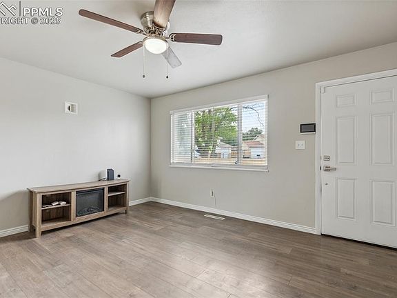 Move In Ready Home in Pikes Peak Park! Nestled on a quiet cul-de-sac and just a short walking distance to school, this beautifully updated home is perfect for families and entertainers alike! Step inside to an open-concept floor plan featuring brand new wood laminate flooring and fresh, modern paint tones that create a warm and welcoming atmosphere. Enjoy the same low maintenance flooring in the hallway and spacious primary bedroom. The functional kitchen flows seamlessly into the walk-out dining area, making everyday living and hosting a breeze. Convenient garage to kitchen entry adds practicality for unloading groceries or getting in quickly during chilly Colorado mornings. Step outside to your ultimate entertaining backyard oasis complete with a fire pit, gazebo with electricity, and new wiring for a hot tub! Whether you’re hosting summer BBQs or relaxing under the stars, this backyard has it all. Don’t miss this incredible opportunity to own a move in ready home in the heart of Pikes Peak Park. Schedule your showing today!