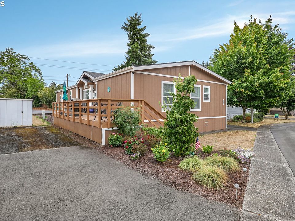 Beautifully maintained and truly move-in ready, this double-wide manufactured home in Mt. Pleasant Mobile Home Park offers comfort and style in the heart of desirable Oregon City. This 3-bedroom, 2-bath home features a spacious open living and dining area, perfect for entertaining. The updated kitchen shines with stainless steel appliances, a center island, and a cozy breakfast nook. The private primary suite sits at one end of the home and includes a full bath and dual closets. Two additional bedrooms and a second full bath on the opposite end of the home provide plenty of space for family or guests. A dedicated laundry room with outside access adds convenience. Step outside to enjoy a large front deck, yard space with raised garden beds, a tool shed, and a covered carport. Recent upgrades include new windows, appliances, flooring, insulation, roof, interior/exterior paint, lighting, bathrooms, decks, and more. Located just minutes from local restaurants, shopping, Canemah Bluff Nature Park’s hiking trails, and Oregon City Golf Club, this home also has a fantastic bike score. A perfect blend of modern updates and an ideal location. *Space rent is $895 and does not include utilities.