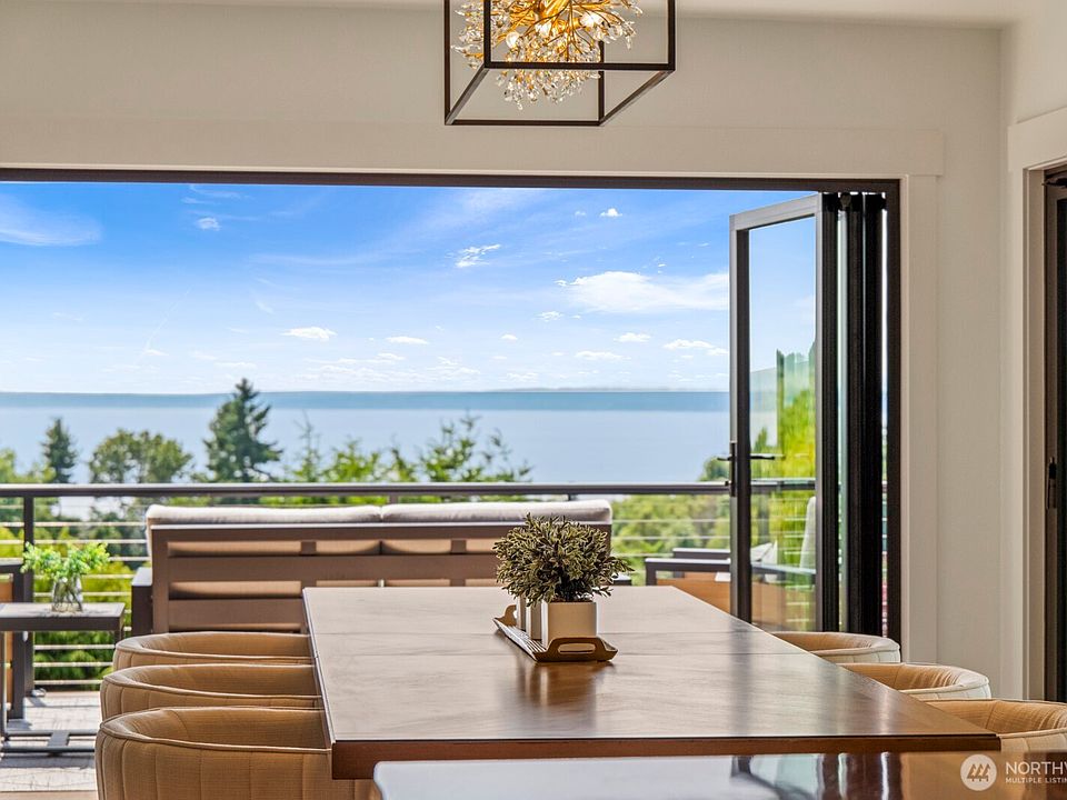 Stunning better-than-new Innis Arden daylight rambler with panoramic Puget Sound & Olympic Mountain views! Thoughtfully updated with 4 beds, 3 spa-like baths, new heat pump/A/C, full home generator, Tesla charger, gas service, dry sauna, invisible dog fence, and new gutters. Chef’s kitchen boasts Wolf appliances, steam oven, 72” Sub-Zero fridge, custom walnut counters, new cabinets, and NanaWall doors opening to a 370 SF composite deck for seamless indoor-outdoor living. Luxe new primary suite features soaking tub, heated floors, smart bidet, floating vanities & walk-in shower. Euro tilt-turn windows, new electrical panel & sub-panel, new gas water heater, refinished hardwoods & secret room. Minutes from downtown Seattle, shops, restaurants