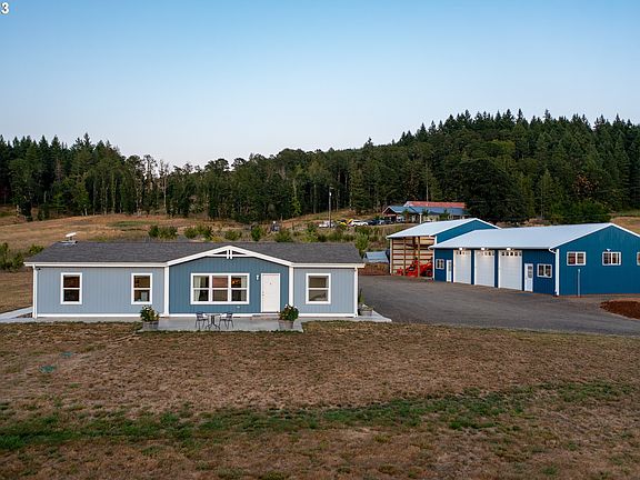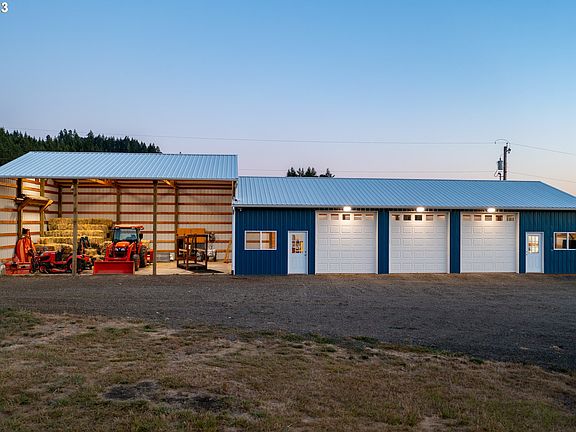 Discover this stunning 10-acre property ideal for animals, farming, or your business endeavors. Only 4 miles from town you'll enjoy breathtaking views, a new 6-bay shop, 8 acres of cross-fenced pasture - and endless possibilities. The insulated shop was built in 2021 on a 6in concrete slab and boasts 3 powered overhead doors, 3 open bays, 110 amp service, 21 electrical outlets, and LED shop lighting. The 2014 manufactured home with 4 beds, 2 baths, and 1512 sq ft features an open concept layout with a modern kitchen and new appliances. Enjoy mountain and sunset views from the front patio, entertain on the rear 43x18 covered patio, and cultivate food from the fenced garden. Other features include a new top-notch furnace and heat pump, French drains plumbed to the creek, Grand Ronde Community Water, Starlink Internet, and seasonal creek frontage. Don't miss this special opportunity to own easily accessible and usable acreage!