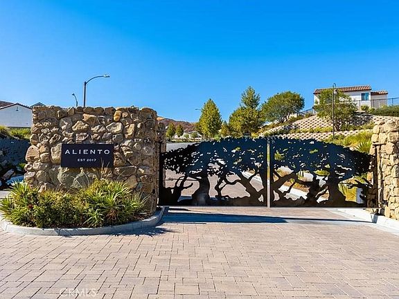 Gorgeous VIEW HOME in the gated community of ALIENTO! Open floor plan has 4,023 square feet of living space. Brand new wood-style floors throughout installed last month. Recently painted last month as well. Bedroom with a full bath downstairs plus a bonus room downstairs currently used as an office adjacent to the laundry room. Has a PAID OFF solar panels. Huge chef style kitchen complete with an over sized island. Granite counter tops, stainless steel appliances, gas burners, double ovens/convection, walk-in pantry, and soft close cabinetry! Pride of ownership with attention to detail. The staircase leads upstairs to an oversized loft area. The primary suite has mountain views, huge bathroom with free standing tub, walk-in shower, dual vanities and a walk-in closet. This property is located in a friendly community which has a clubhouse, a huge pool for adults, small pool for kids, Jacuzzi, dog park, gym, private park, and much more! 2 Minutes away from shops, restaurants, public parks and hiking trails. It's an entertainers delight and this community is a great place for your family. Yearly Mello Roos tax is $4,119. Don't miss your opportunity to own this stunning home in the hidden gem of Santa Clarita Valley "Aliento".