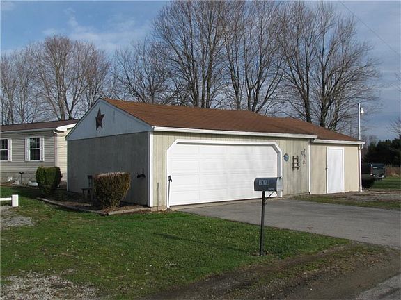 Country Location. Large center island in kitchen w/add'l. prep sink, large ceiling lights, oak cabinets, coffee bar, pantry, pendulum lighting. Great room feel to this contemporary open floor plan. Desk area great for keeping organized. Heat pump 5 yrs. Chlorination system for water. 2 1/2 car det. garage. Front porch and shed. Full basement could be finished. Garden spot. Side porch.