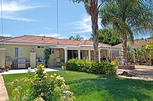 Come live in this quaint 2 bedroom one bath home. This lovely home has great curb appeal with a nice front yard. The large backyard has a lawn, mature palm trees, and covered patio for entertaining or outdoor dining. Attached 2 car garage with laundry in the garage. Kitchen has tile counters and floors. Living room has tile flooring. Hall bath has tile flooring with tile bathtub and shower in one. Pedestal sink also in bathroom. Walking distance to elemetnary school and community center.