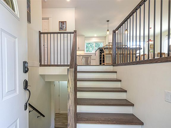Fabulous family home in a prime location where rural charm meets urban convenience. This fully renovated, open-concept home features a stylish farmhouse kitchen with shaker cabinets, subway tile backsplash, stainless steel appliances, a Kitchenaid gas range, and a large island perfect for gathering. The bright living room with wood-burning F/P. 3 bdrms on the main, including a spacious primary with 2pc ensuite and an updated 4pc main bath. Downstairs offers excellent flexibility with a family room, 4th bdrm, 3pc bath, plus a 5th bdrm or home office, laundry area and mudroom. Enjoy afternoon sun on the S/W-facing upper deck or relax on the lower patio. The fully fenced, beautifully landscaped private backyard features raised garden beds, fruit trees, herbs, and drip irrigation. Additional features include newer vinyl windows, updated lighting, heat pump, gas furnace, and a bonus garage. Walkable to country roads and trails, yet close to shops, restaurants, and easy highway access.