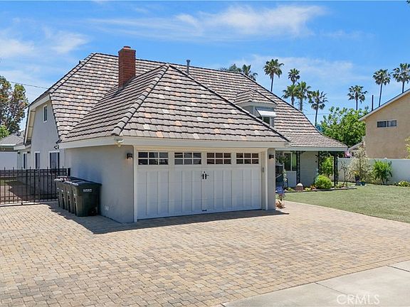 Discover this stunning pool and spa home in the heart of Orange, located on a double cul-de-sac within the highly sought-after Villa Park School district. This beautifully updated 3 bedroom home features an expansive main floor primary suite with direct access to the pool, as well as 2 primary suites upstairs, 4 bathrooms, and 2934 square feet of living space. This home also offers the perfect blend of comfort, style, and functionality. Set on an 8,100 sq ft lot, the home is designed for entertaining, with a resort-style backyard that includes a sparkling pool, relaxing spa, firepit, outdoor kitchen with porcelain and butcher block countertops, and a pavered driveway and artificial grass, that enhances curb appeal. In addition, there is an RV access on the property. Inside, enjoy a freshly painted interior with recessed lighting, crown molding, a spacious family room with cathedral ceilings, and one of two cozy fireplaces, as well as tile flooring throughout. The kitchen is equipped with waterfall quartz countertops, self-closing cabinets and convenient pull-out drawers, ideal for both everyday living and hosting. The downstairs primary suite was previously two bedrooms—now thoughtfully combined into one expansive retreat with a handicap-accessible shower and closet. Bathrooms include dual sinks and an epoxy-coated drain in the downstairs bath. Upstairs, each bedroom is generously sized and offers a HUGE walk-in closet with windows for natural light. Additional highlights include dual-system controlled HVAC, a tankless water heater, and thoughtful touches throughout. This home is truly move-in-ready with a perfect blend of indoor and outdoor living. A rare opportunity to own a beautifully upgraded home in a prime Orange location with access to top-rated Villa Park Schools!