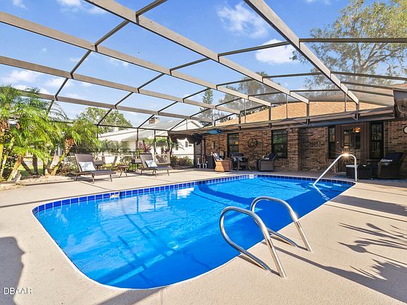 This beautiful brick home, nestled in the prestigious gated Spruce Creek Fly-In community, offers an amazing lifestyle with three spacious bedrooms, two bathrooms, and a private pool surrounded by lush tropical landscaping. Located on the golf course, this home boasts an open floor plan flooded with natural light, showcasing tile plank flooring throughout. The large great room and dining room flow seamlessly into the kitchen, which features granite countertops and stainless steel appliances, while the breakfast nook overlooks the pool and tranquil backyard. The split-bedroom layout ensures privacy, with the master suite offering ample space and a master bathroom complete with a walk-in shower and garden tub. On the opposite side of the home, the second and third bedrooms share a Jack and Jill bathroom, offering comfort and privacy for both rooms. The air-conditioned Florida room, with beautiful glass windows, provides an ideal spot to relax, with views of the pool, park-like backyard, and golf course. This home is packed with upgrades, including impact windows (134 mph wind rating) installed in 2023, new professional landscaping in 2023, a resurfaced pool in 2024, and a new Generac on-demand generator installed in 2024. Additional updates include a new Florida room mini-split system in 2024, a termite bond, a roof from 2018, A/C from 2020, a hot water heater from 2023, and a new electrical panel installed in 2023.