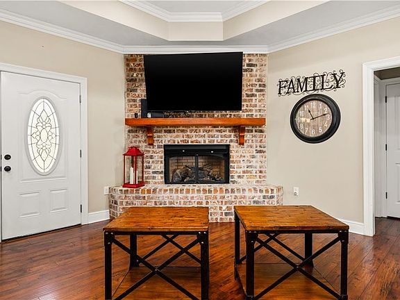 This inviting split floorplan home boasts 3 bedrooms and 2 baths, along with a versatile office space that can serve as a 4th bedroom. The open layout seamlessly connects the kitchen and living area, highlighted by a spacious brick accented island with bar height seating. A charming corner brick fireplace and room sized tray ceiling adds character to the living space, while the well-equipped kitchen features stainless appliances, extensive counter space, and granite countertops, making it a perfect setting for both relaxation and entertaining. Light neutral paint colors paired with wood flooring and exposed brick accents create an inviting and airy space in this beautiful home, enhancing natural light with a warm details. The primary suite with high, double trayed ceiling, offers a perfectly designed layout with an impressive 8' x 8' walk-in closet connected to both the ensuite and laundry room. Additional bedrooms and shared hall bath are spacious and well apportioned. The large lot offers is an outdoor space ideal for play or potential additions like a shop or shed, complemented by easy access to Hwy 165 N for effortless commuting. Schedule a showing today and become part of the Grant Parish community.