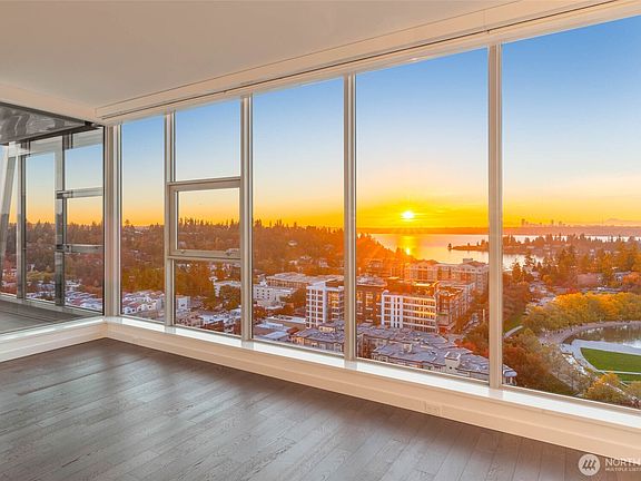 Enjoy the best of the Bellevue lifestyle at this beautiful SW corner 3-Bedroom home with two large terraces designed for modern living and entertainment. Spacious, with Wide-plank hardwood floors and floor-to-ceiling windows that frame Lake Washington and the Seattle skyline. An expansive island centers the chef's kitchen that features Gaggenau appliances and waterfall counters. The spacious owner's suite presents a large walk-in closet and sleek herringbone porcelain tile shower. Private garage with exclusive gate for two cars. World-class amenities include 24-7 concierge, garden terraces, fitness + spin studio, pool, steam room, virtual golf, party room, all a block from The Bellevue Collection and Main Street's shops and restaurants.