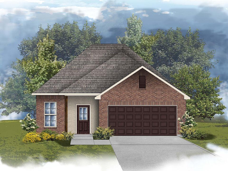 Features: double vanity, garden tub, separate shower, and a walk-in closet in the primary suite, double vanity in the second bathroom, a kitchen island overlooking the dining area, spacious walk-in pantry, covered rear patio, ceiling fans in the living room and primary bedroom are standard, smart connect wi-fi thermostat, smoke and carbon monoxide detectors, post tension slab, landscaping, architectural 30-year shingles, flood lights, and more!