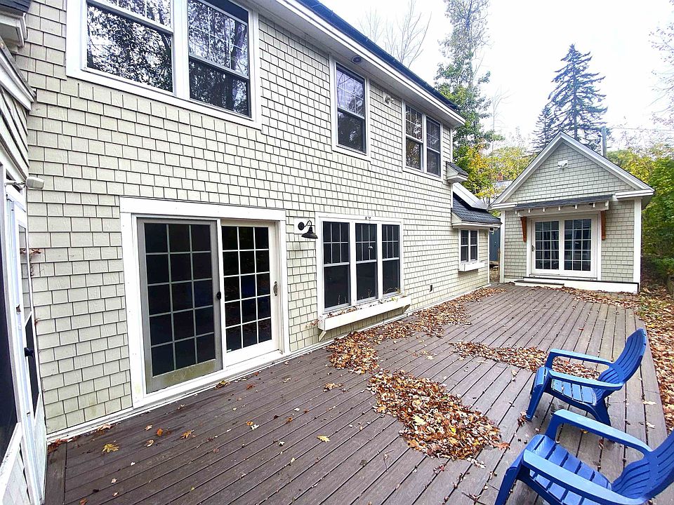 Modern Country Living Meets Smart Sustainability - Discover the perfect blend of tranquility and convenience in this custom-built contemporary Cape, nestled just five minutes from Route 93. Designed for effortless living, this newer home features a maintenance-free exterior and fully paid solar panels, keeping your electric bills as low as $20 during warmer months—an exceptional value for eco-conscious homeowners. Main Residence and Guest House Retreat - Boasting over 1,700 square feet of total living space, the property includes a beautifully appointed 430 sq ft guest house complete with a mini-split system for year-round comfort. Ideal for hosting guests, working remotely, or creating a private studio. Crafted Interiors with Designer Touches - Step inside to a warm, ship-lap accented interior and a custom dovetailed hardwood kitchen adorned with quartz countertops and sleek black stainless steel appliances. The upstairs bathroom is a spa-like sanctuary featuring a double vanity, custom tiled surround, and a deep insulated soaking tub—all powered by a high-efficiency on-demand propane system for heat and hot water. Outdoor Living Elevated - Enjoy serene mornings and sunset evenings on your expansive 500 sq ft Trex deck, seamlessly connected to a screened porch—perfect for entertaining or unwinding in nature.