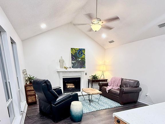 Inviting wood-burning fireplaceOpen floor planGorgeous newer flooringNatural lightSoaring cathedral ceilingsNewly painted exteriorThoughtful updates