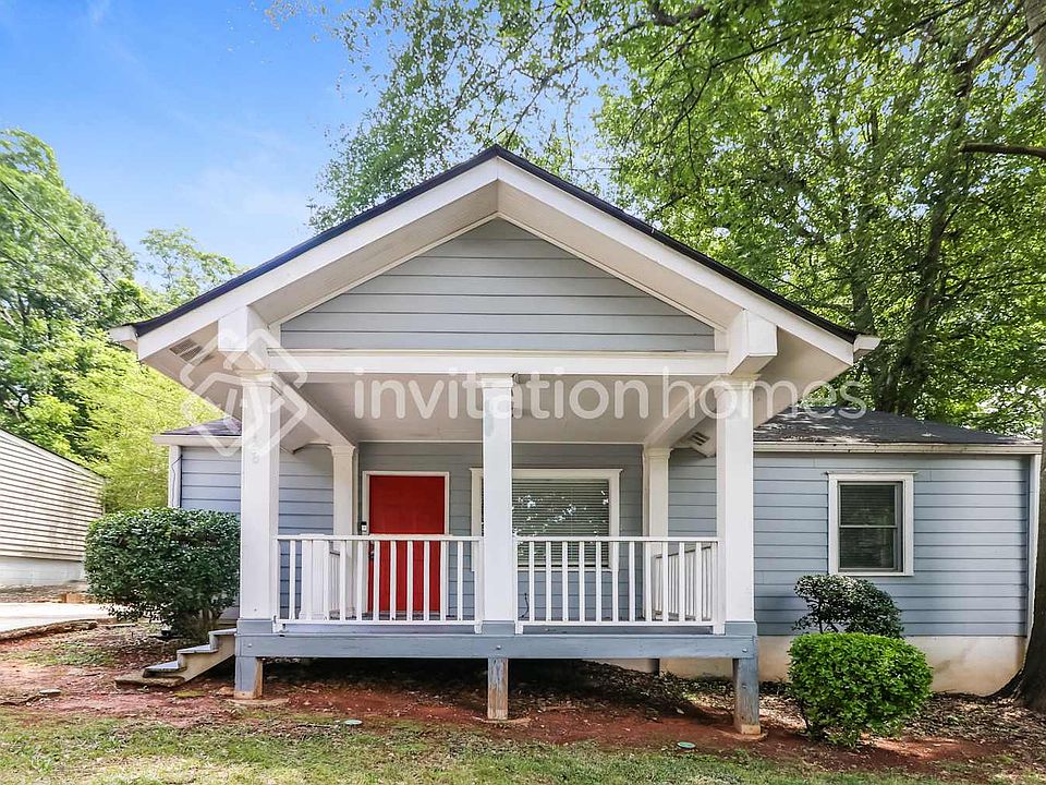 Home Features and Amenities: Air Conditioning, Bay Windows, Covered Porch, Fenced Yard, Hardwood Floors, Long Lease Terms, Patio, Pet Friendly, Primary Bedroom on Main, Single Story House, Smart Home, Stainless Steel Appliances, Tile, W/D Hookups, and professionally managed by Invitation Homes.