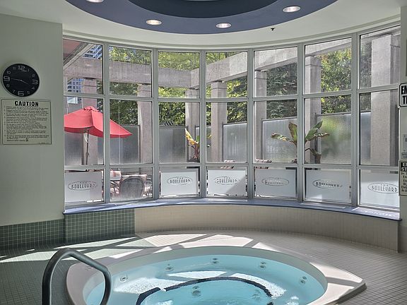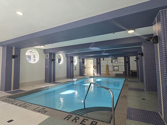 Occupancy for the 1,047-sqft 2-bedroom, 2-bathroom corner condo unit. Central heating and AC. Water/gas included. 1 underground parking spot included. Private balcony. Included appliances: fridge, stove, microwave, dishwasher, washer, dryer, and range hood. Building amenities include: swimming pool, elevator, BBQ, tennis court, movie room, party room, fitness facility, visitors parking, steam room, party room, concierge, elevator, and more.