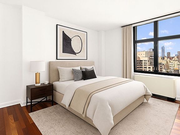 Sprawling and light-filled 3 bedroom/3.5 bathroom home in a white glove condominium in the heart of the Upper East Side. This spacious, high floor home boasts three large bedrooms, all with en-suite bathrooms, a large windowed kitchen, full dining room and open city views from every window. The large living room has a wall of windows with open city views and endless light. The over-sized primary suite is separate from the other bedrooms and includes a large bathroom with double sinks and a separate tub and shower as well as a dressing area. There is also a powder room, wine storage and ample closets throughout. Washer dryers are permitted with building approval and pets are welcome.